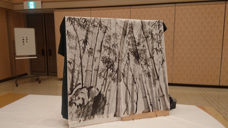 水と墨で遊ぶことからはじめて、自分のイメージを作り出していきます。様々な作品が生まれる可能性があります。年齢性別関係なし。誰もが楽しめる絵画です。